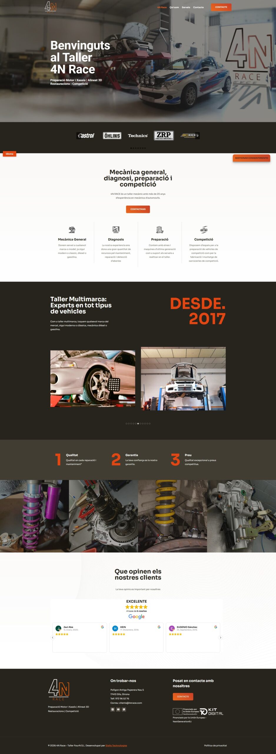 4N Race (Taller FourN S.L.) es un taller mecánico con sede en Sils (Girona) y más de 20 años de experiencia en mecánica general, diagnosis, preparación y competición. Trabajan tanto con vehículos modernos como clásicos y cuentan con equipamiento específico para servicios avanzados como alineado 3D y trabajos de motor y chasis, con un enfoque muy ligado al mundo del rally y la competición.