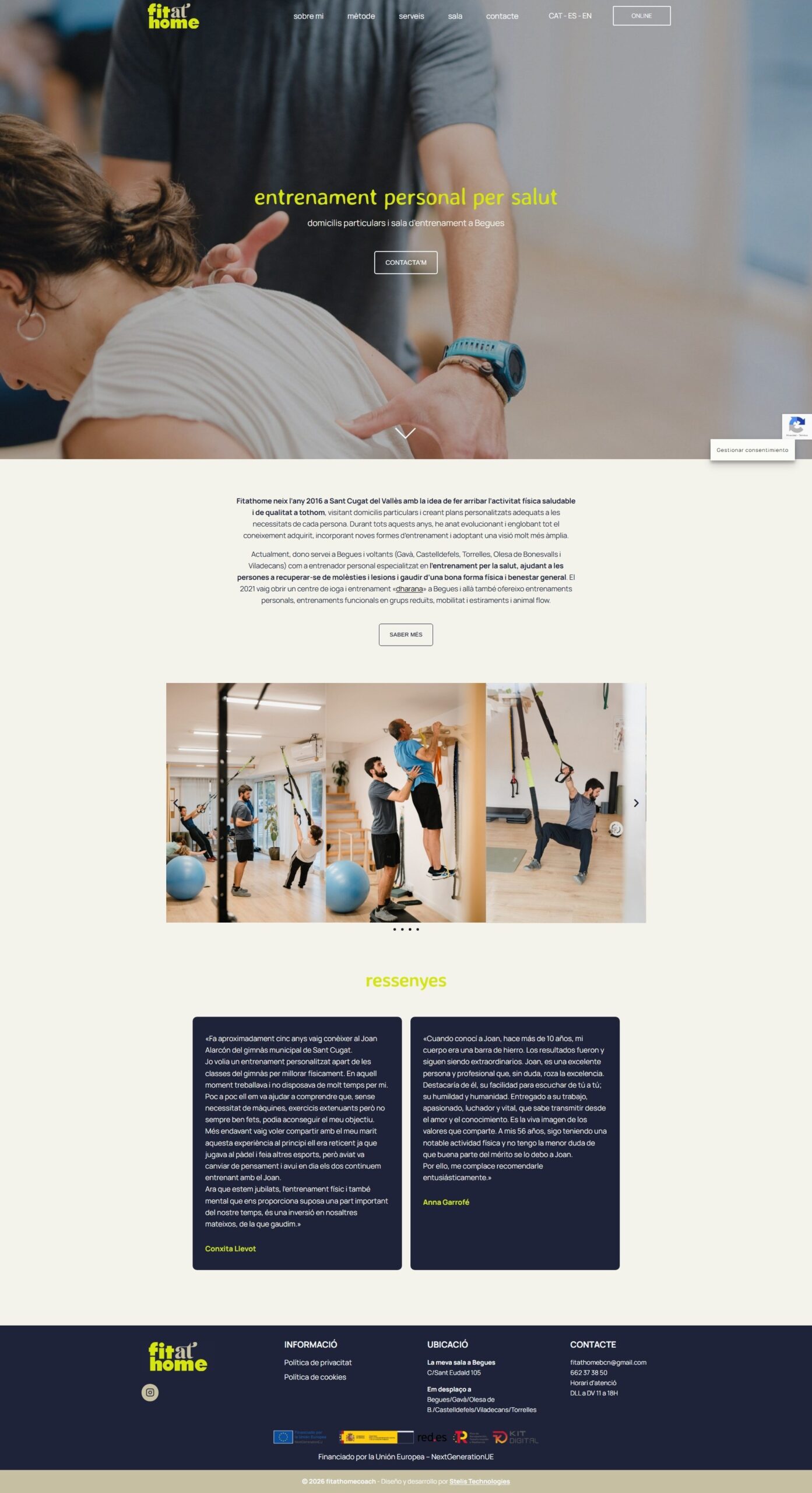 Entrenamiento personal orientado a la salud en Begues y a domicilio. Dimos soporte y desarrollo en WordPress para una web clara, multidioma y alineada con el diseño del cliente.