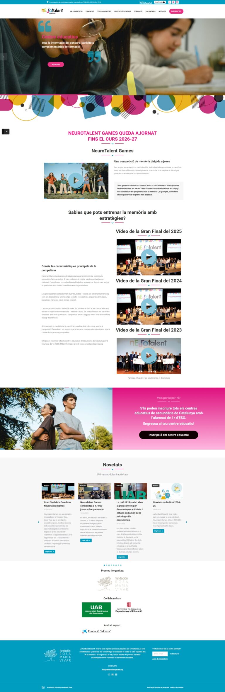 Fundació Rosa Maria Vivar (Reus). Diseñamos y maquetamos su página web WordPress para comunicar la competición de memoria Neurotalent Games con una experiencia clara, jerarquía de contenidos y SEO on-page.